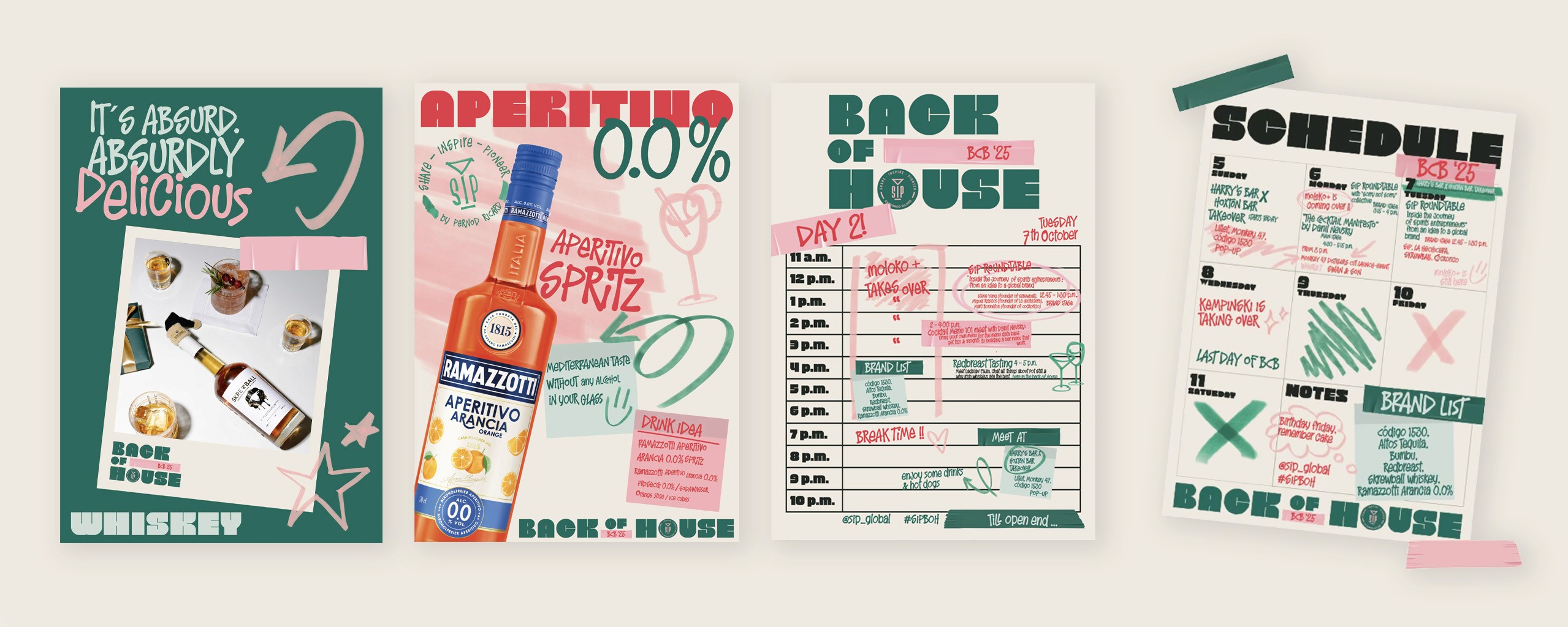 Inspired by the visual language of staff environments — notice boards, schedules, handwritten notes and improvised signage. The informal, layered aesthetic strengthens the authentic back-of-house atmosphere and supports the overall concept of the booth.